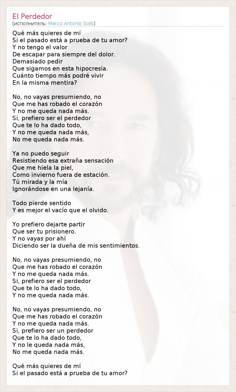 А как ты думаешь, о чем песня "El Perdedor" ?