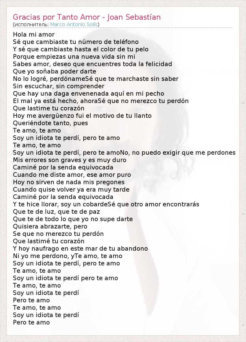 А как ты думаешь, о чем песня "Gracias por Tanto Amor - Joan Sebastían" ?