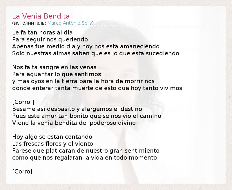 А как ты думаешь, о чем песня "La Venia Bendita" ?