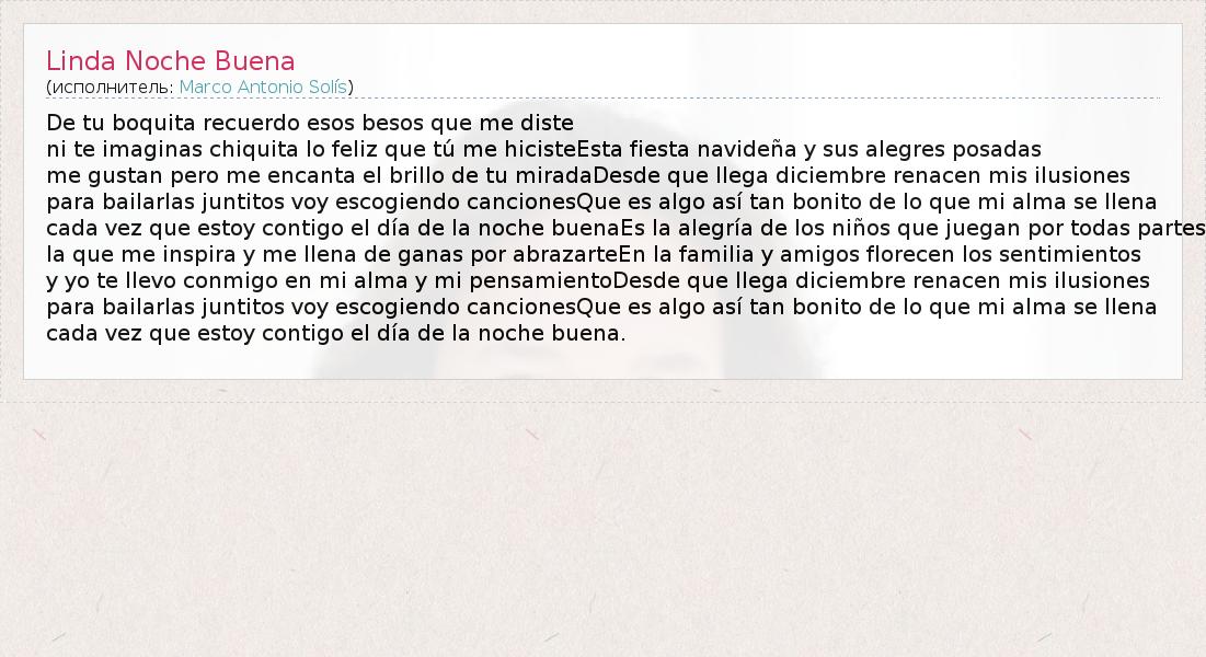 А как ты думаешь, о чем песня "Linda Noche Buena" ?