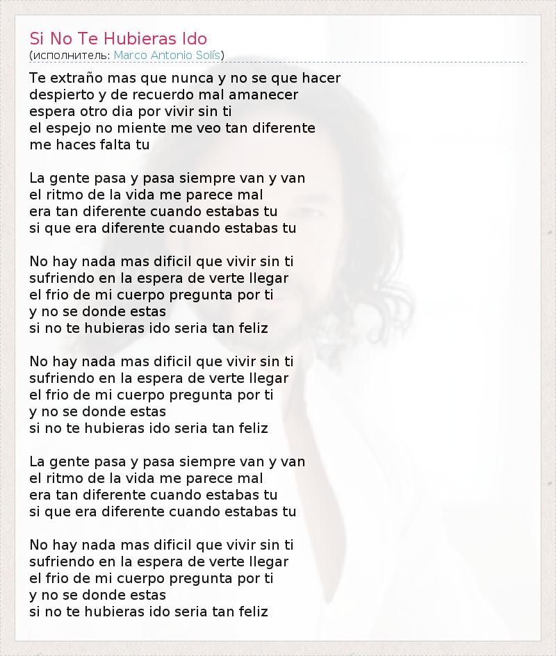 А как ты думаешь, о чем песня "Si No Te Hubieras Ido" ?