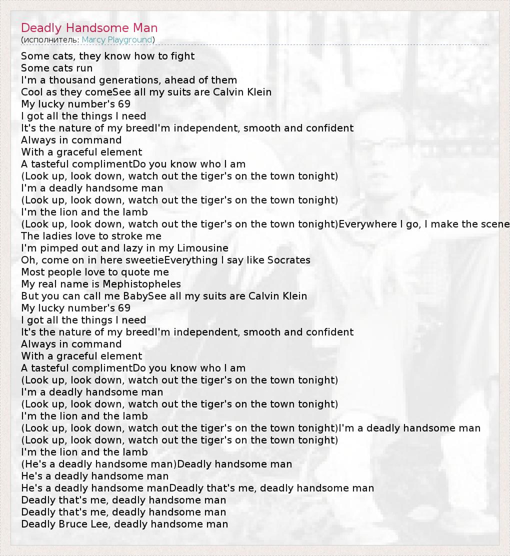 А как ты думаешь, о чем песня "Deadly Handsome Man" ?