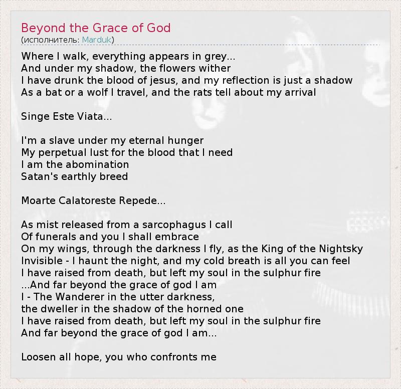 А как ты думаешь, о чем песня "Beyond the Grace of God" ?