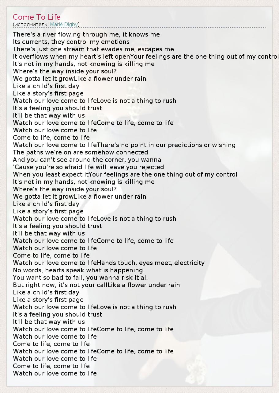 Watch our love come to lifeThere's no point in our predictions or wishing