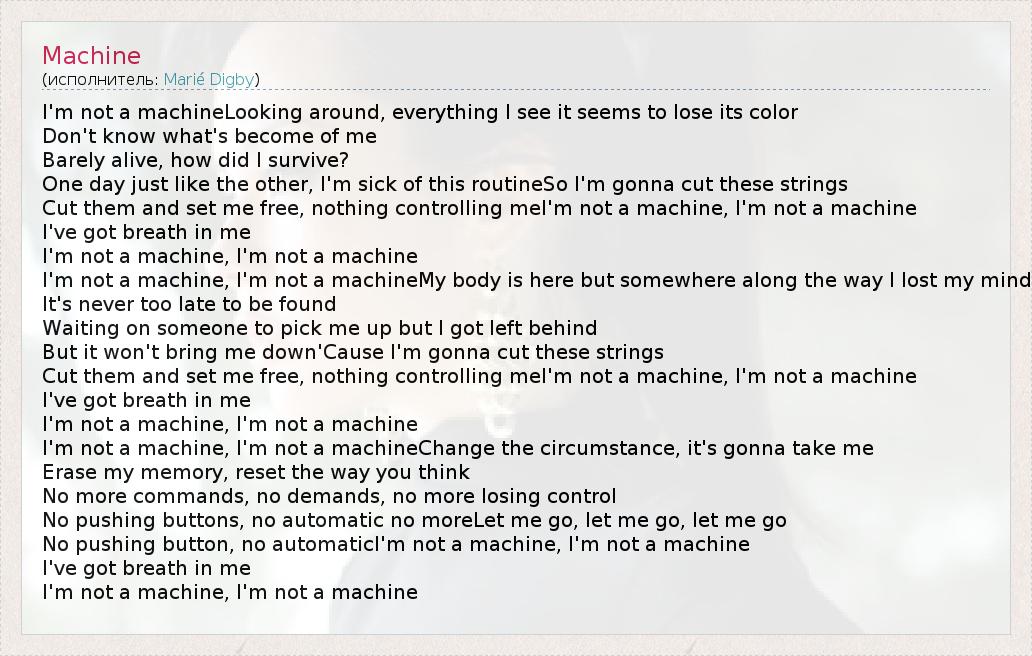 А как ты думаешь, о чем песня "Machine" ?