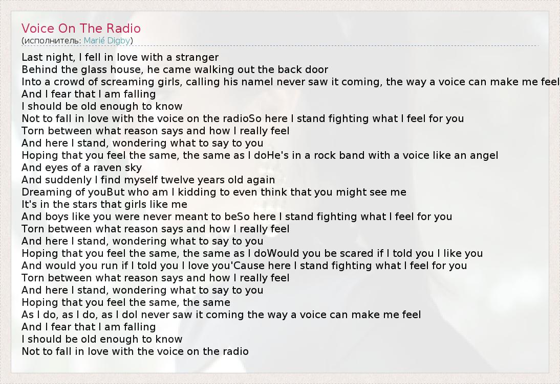 А как ты думаешь, о чем песня "Voice On The Radio" ?