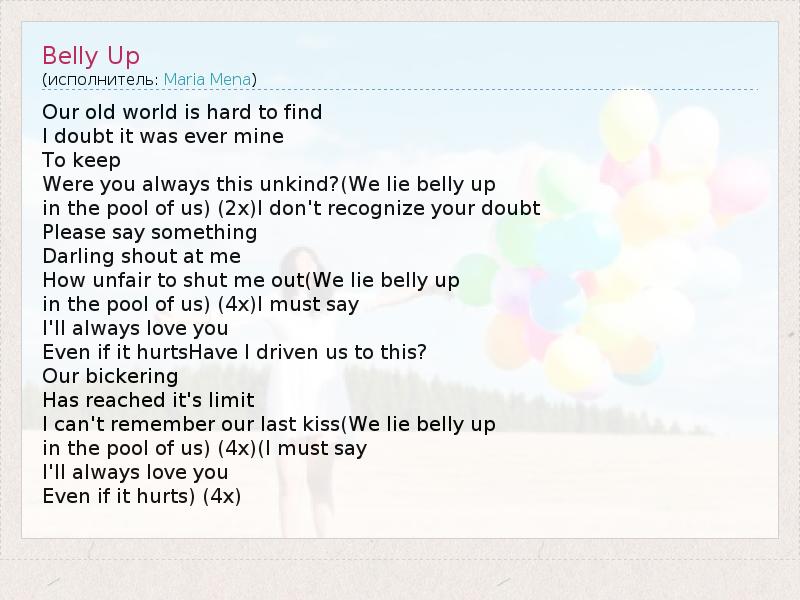 А как ты думаешь, о чем песня "Belly Up" ?