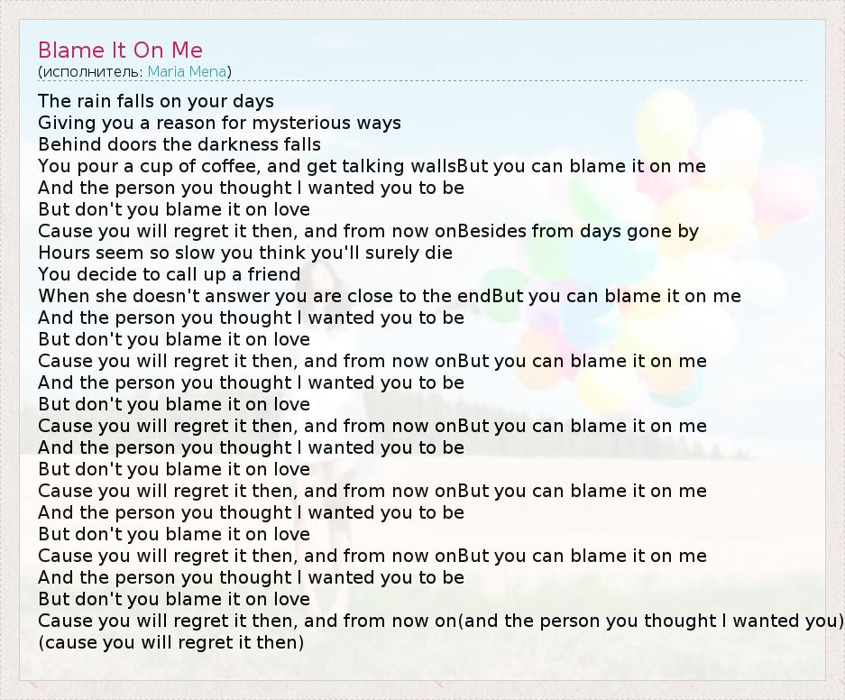 А как ты думаешь, о чем песня "Blame It On Me" ?