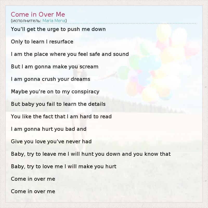 А как ты думаешь, о чем песня "Come in Over Me" ?