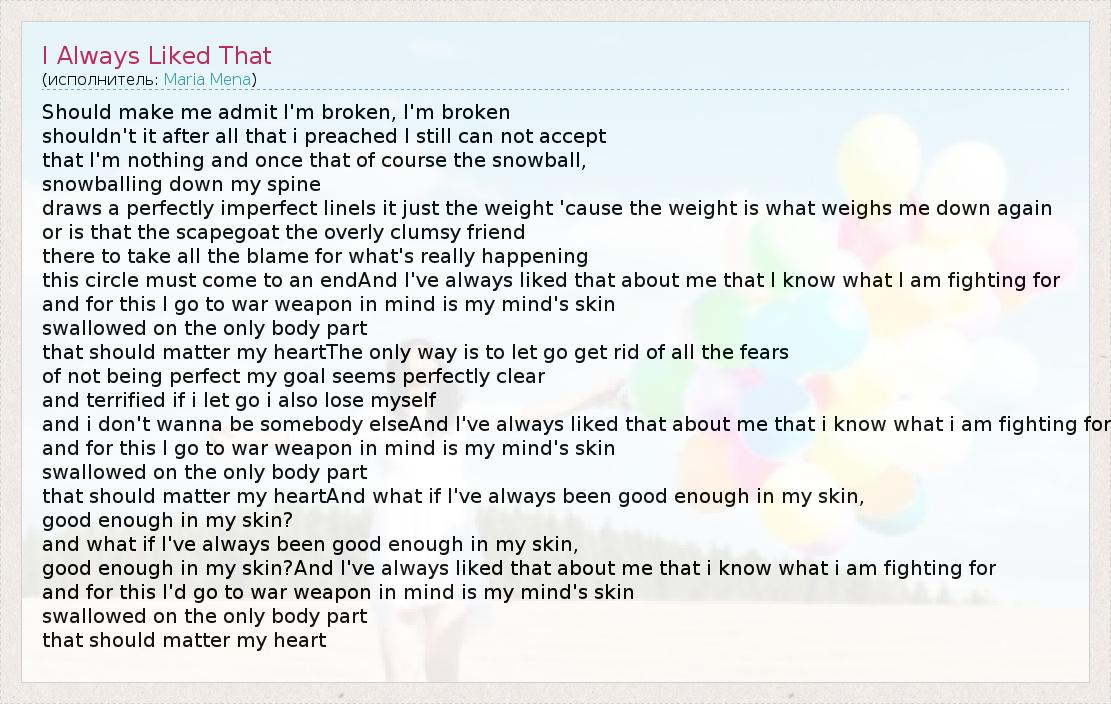 А как ты думаешь, о чем песня "I Always Liked That" ?