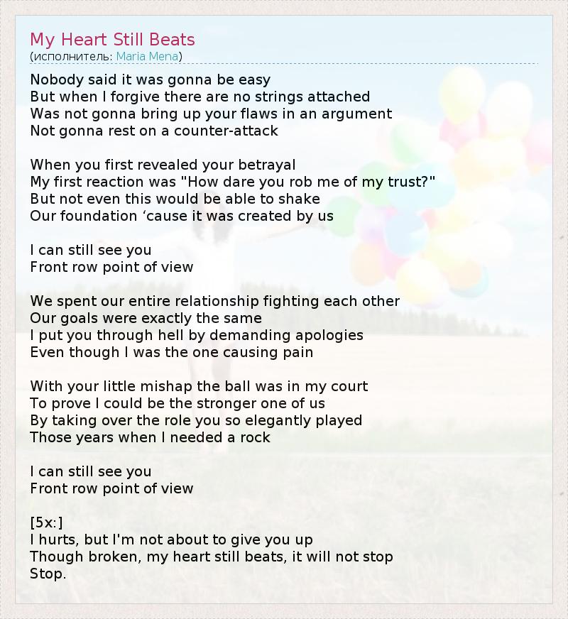 А как ты думаешь, о чем песня "My Heart Still Beats" ?