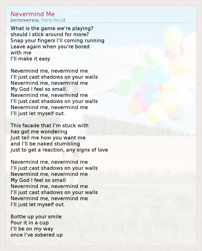 А как ты думаешь, о чем песня "Nevermind Me" ?