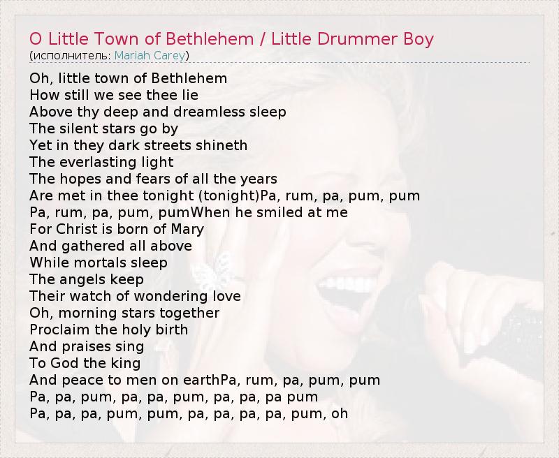ГлавнаяИсполнителиMariah CareyO Little Town of Bethlehem / Little Drummer Boy