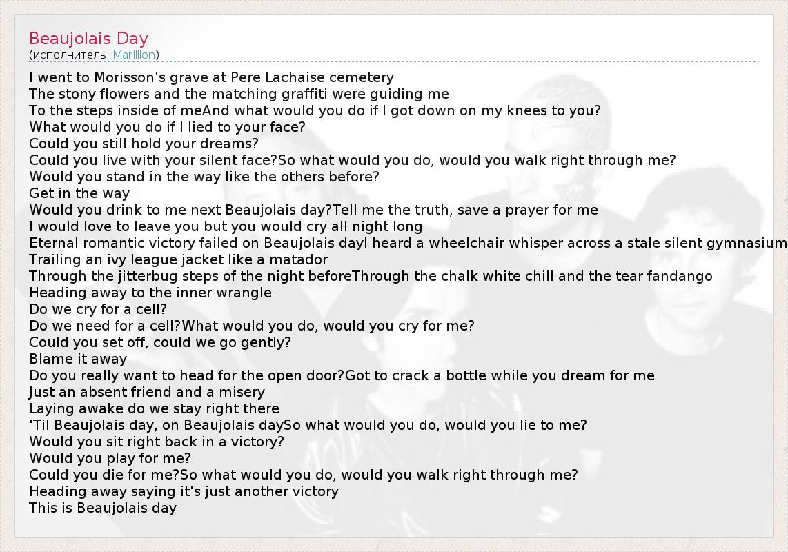 А как ты думаешь, о чем песня "Beaujolais Day" ?