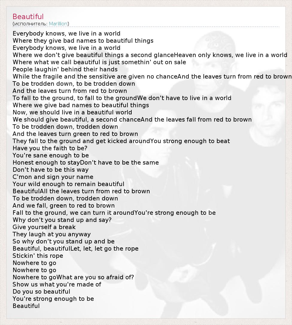 We should give beautiful, a second chanceAnd the leaves fall from red to brown