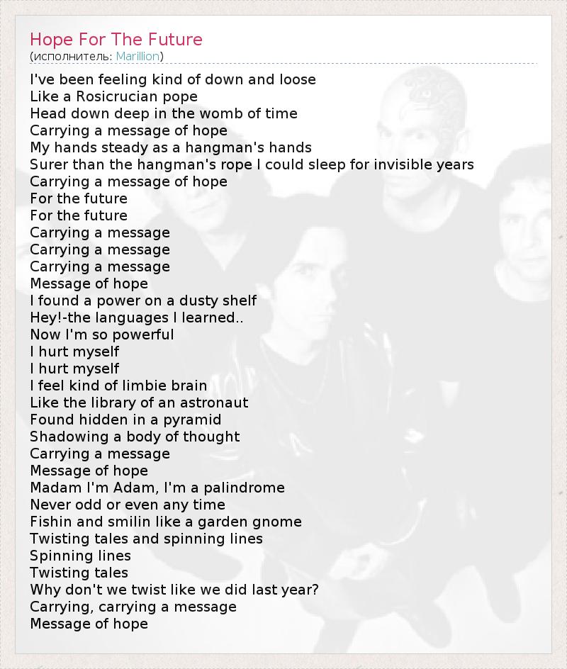А как ты думаешь, о чем песня "Hope For The Future" ?