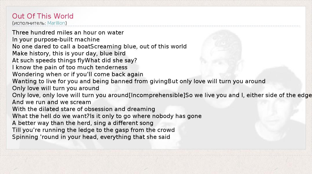 А как ты думаешь, о чем песня "Out Of This World" ?