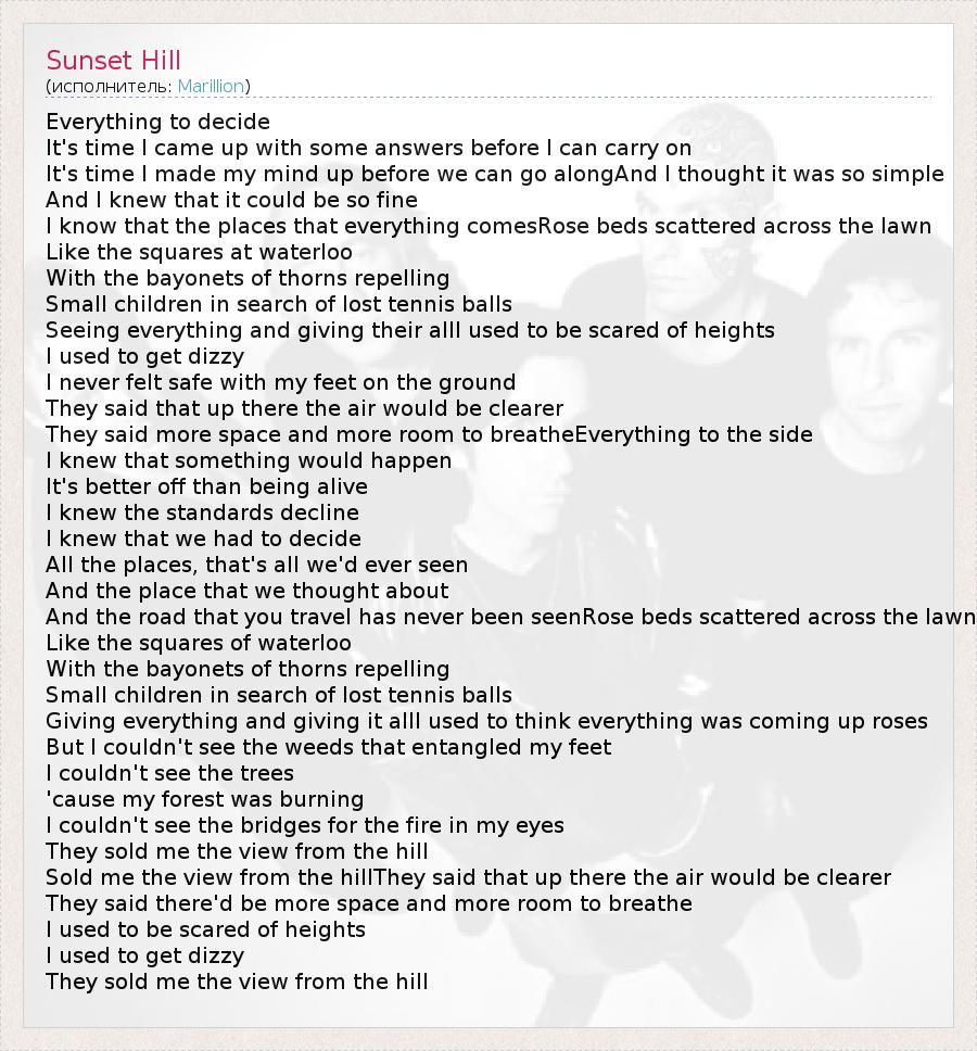 А как ты думаешь, о чем песня "Sunset Hill" ?