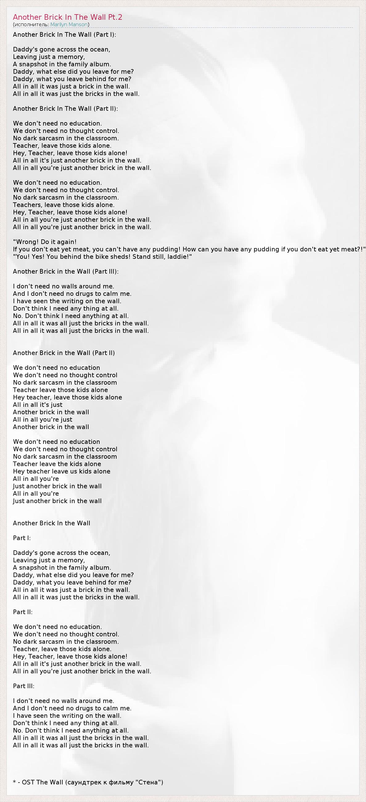 ГлавнаяИсполнителиMarilyn MansonAnother Brick In The Wall Pt.2