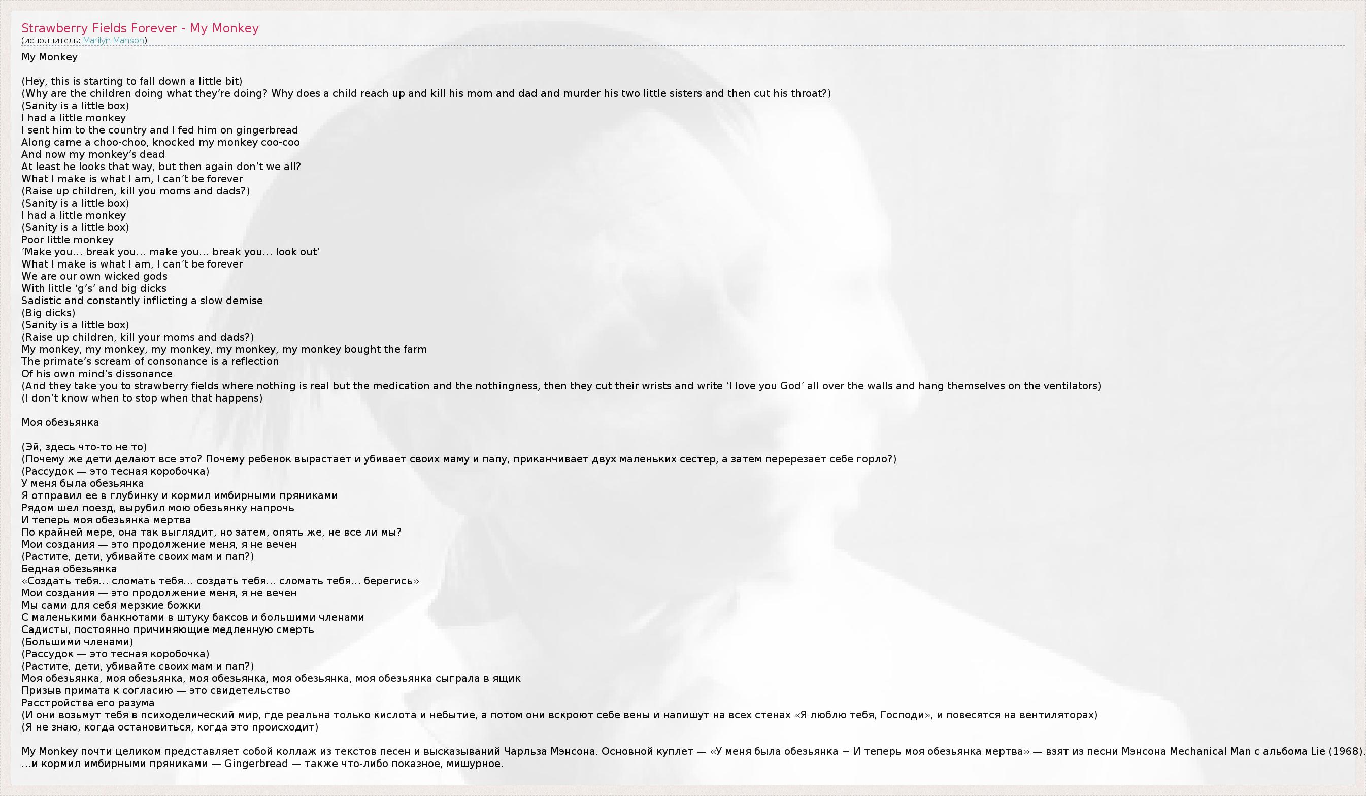 ГлавнаяИсполнителиMarilyn MansonStrawberry Fields Forever - My Monkey