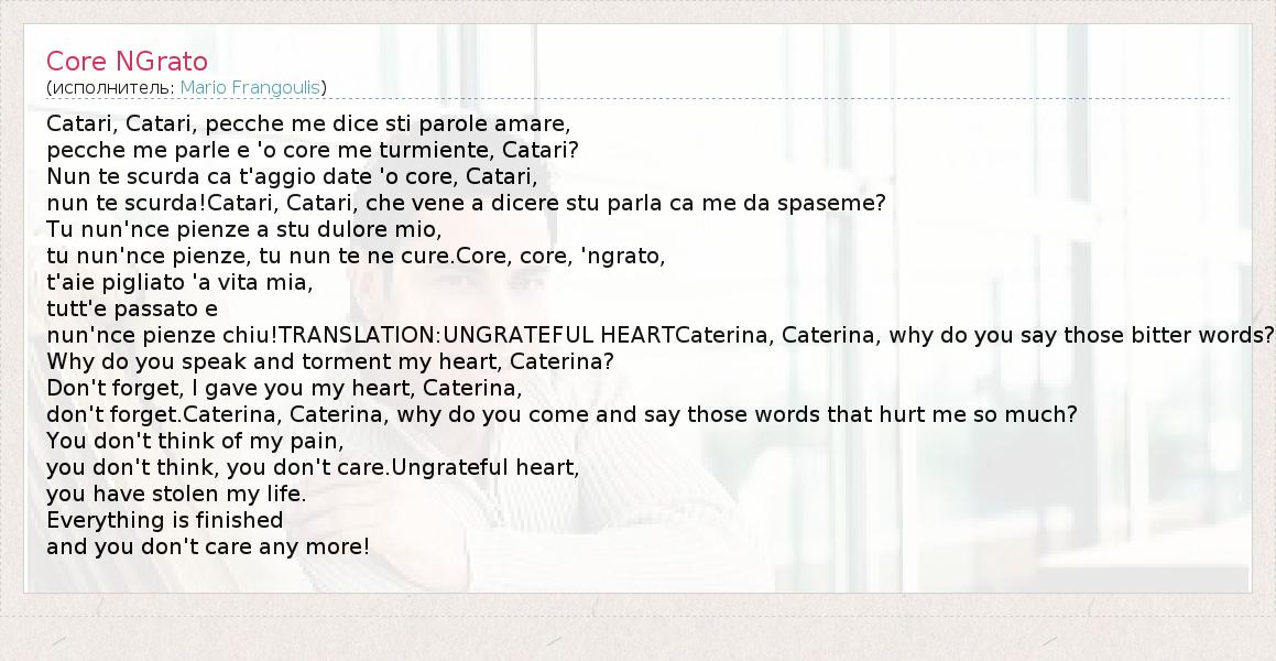 nun'nce pienze chiu!TRANSLATION:UNGRATEFUL HEARTCaterina, Caterina, why do you say those bitter words?