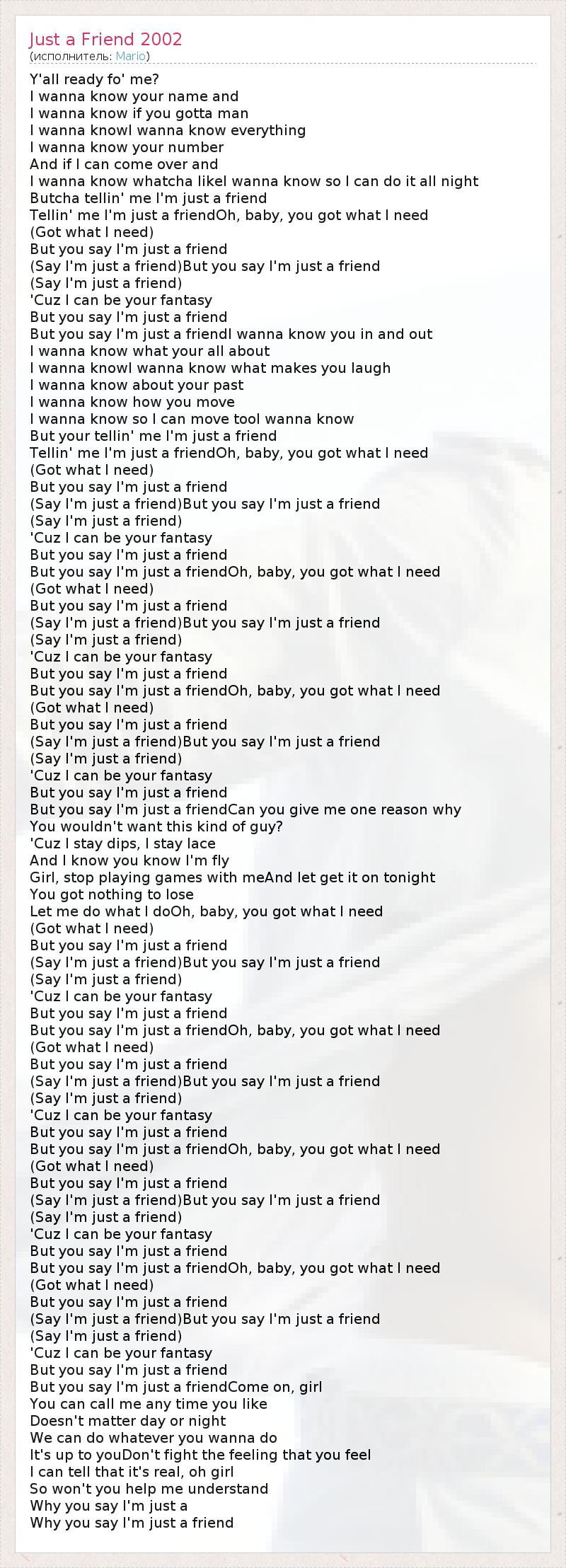 А как ты думаешь, о чем песня "Just a Friend 2002" ?