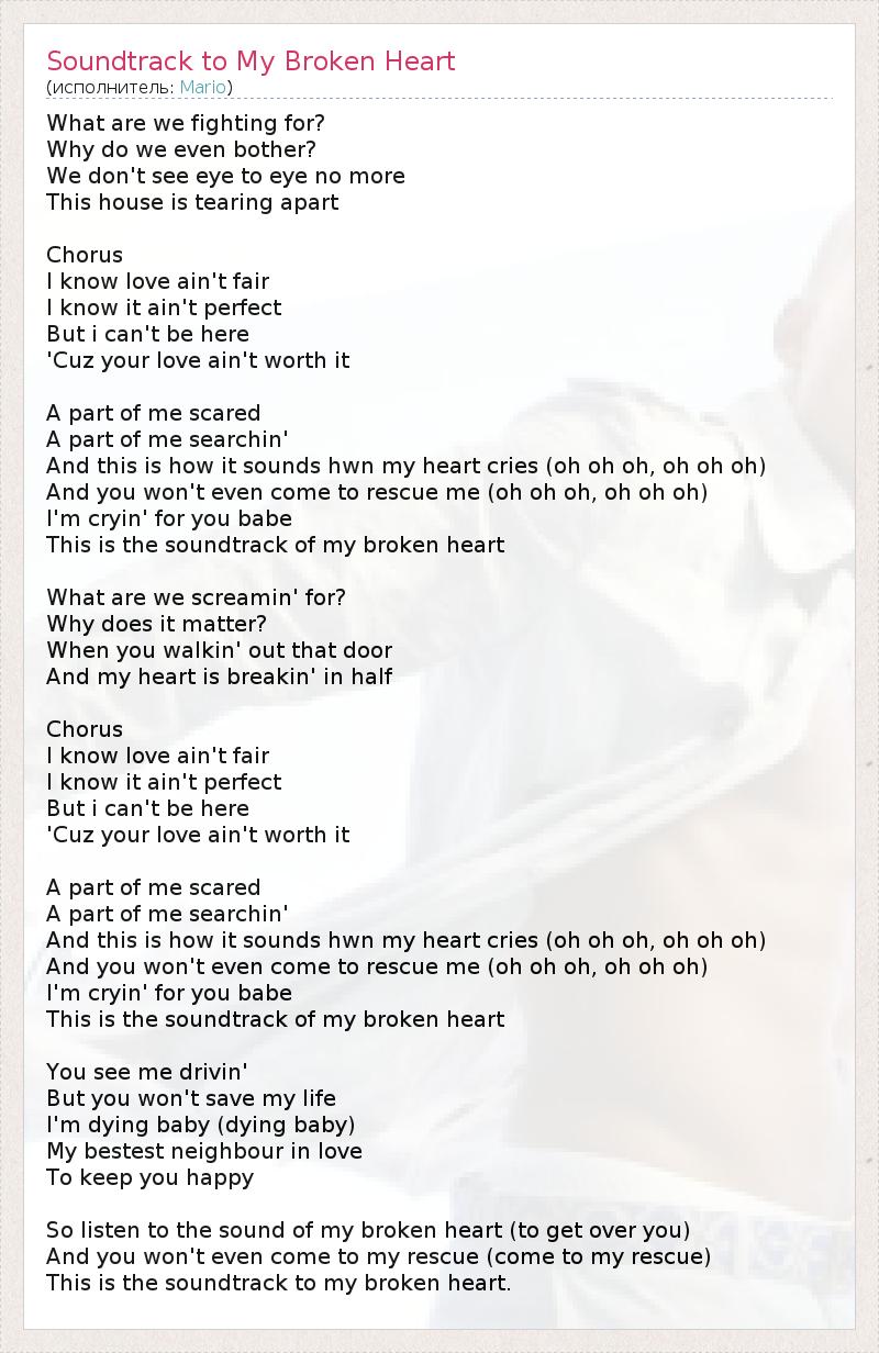 А как ты думаешь, о чем песня "Soundtrack to My Broken Heart" ?