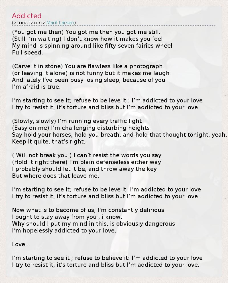 I try to resist it, it’s torture and bliss but I’m addicted to your love.