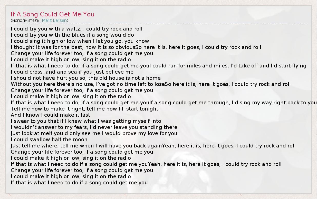 ГлавнаяИсполнителиMarit LarsenIf A Song Could Get Me You