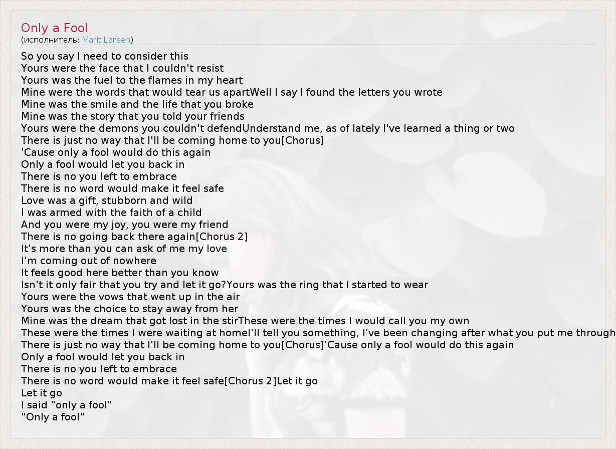 А как ты думаешь, о чем песня "Only a Fool" ?