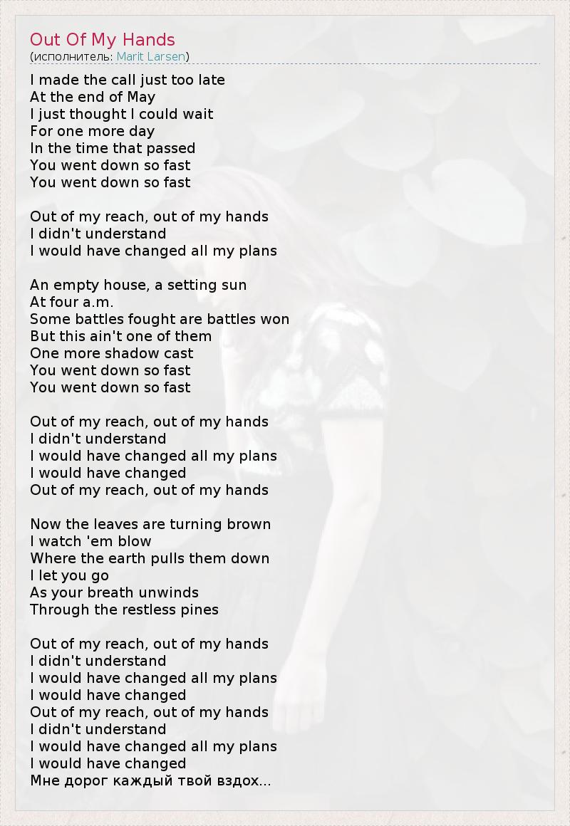 А как ты думаешь, о чем песня "Out Of My Hands" ?