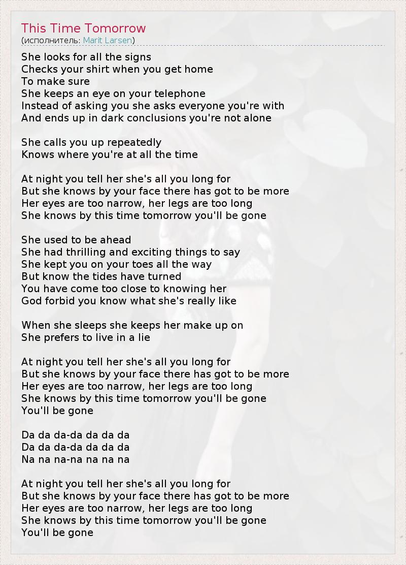 А как ты думаешь, о чем песня "This Time Tomorrow" ?