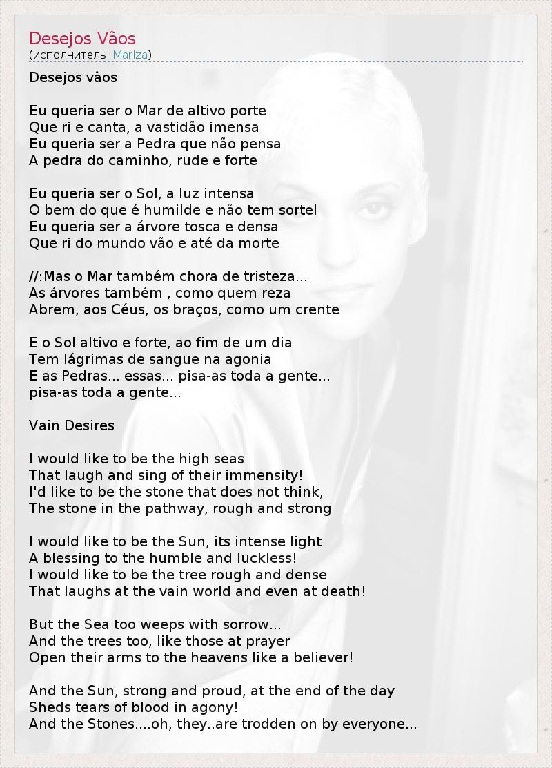А как ты думаешь, о чем песня "Desejos Vãos" ?