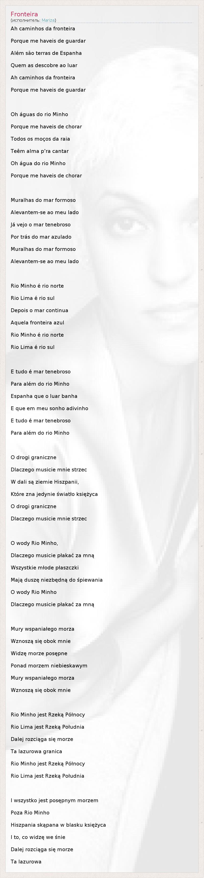 Это интересно:Мариза (полное имя — Мари́за Ре́йш Ну́неш, порт. Mariza Reis Nunes) — всемирно известная португальская певица, исполнительница фаду. Самая успешная исполнительница в этом жанре после легендарной Амалии Родригес, «сенсация в мире музыки», по словам английской The Independent.БиографияРодилась 16 декабря 1973 года в Мозамбике. В трёхлетнем возрасте переехала с родителями в Лиссабон. Первый альбом... продолжение