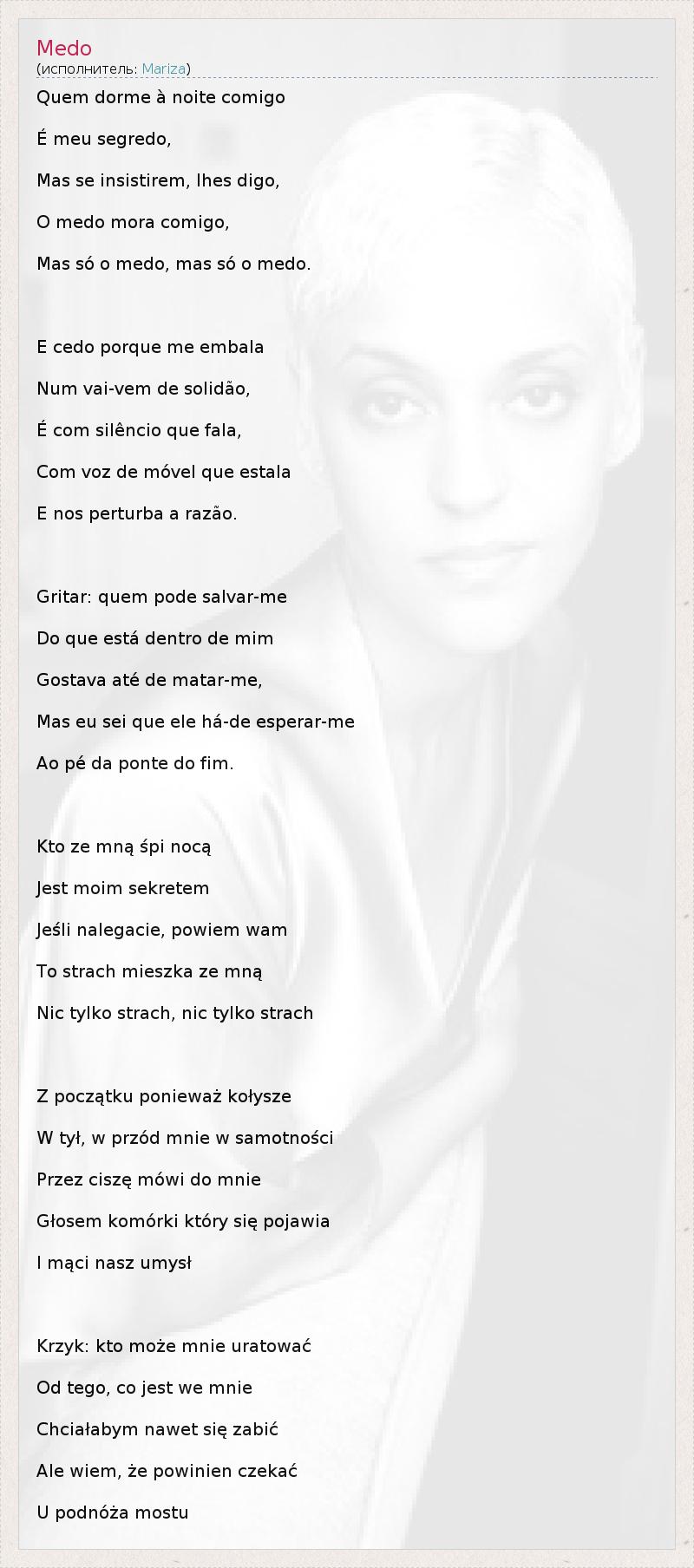 Это интересно:Мариза (полное имя — Мари́за Ре́йш Ну́неш, порт. Mariza Reis Nunes) — всемирно известная португальская певица, исполнительница фаду. Самая успешная исполнительница в этом жанре после легендарной Амалии Родригес, «сенсация в мире музыки», по словам английской The Independent.БиографияРодилась 16 декабря 1973 года в Мозамбике. В трёхлетнем возрасте переехала с родителями в Лиссабон. Первый альбом... продолжение