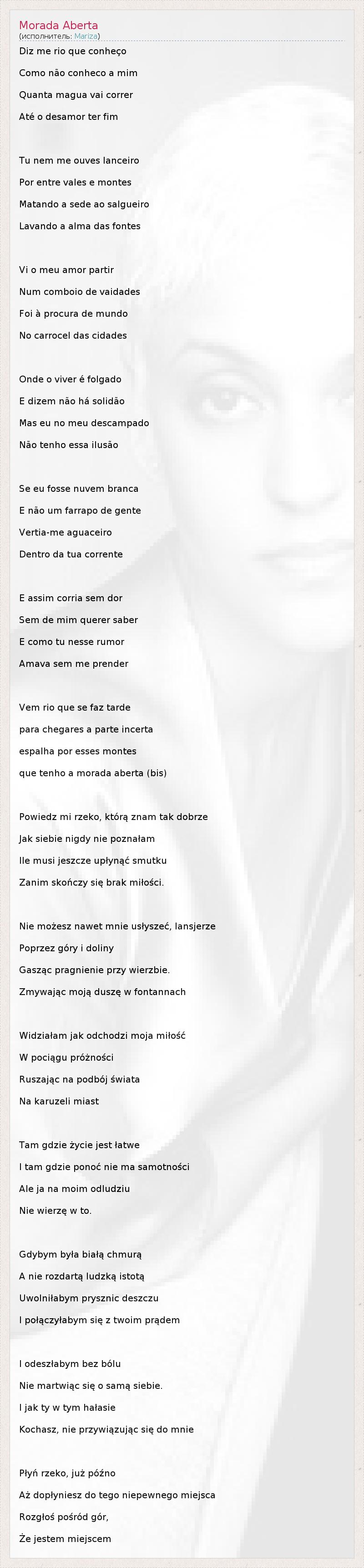 А как ты думаешь, о чем песня "Morada Aberta" ?