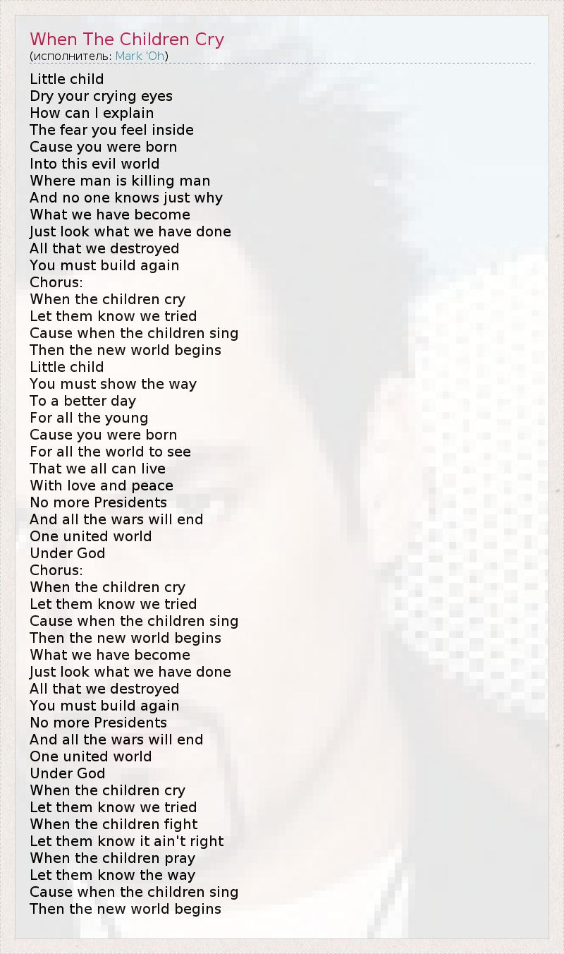 ГлавнаяИсполнителиMark 'OhWhen The Children Cry