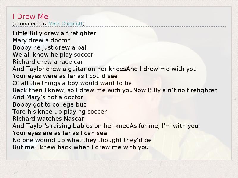 А как ты думаешь, о чем песня "I Drew Me" ?