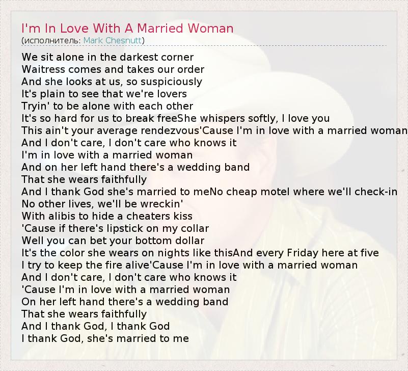 А как ты думаешь, о чем песня "I'm In Love With A Married Woman" ?