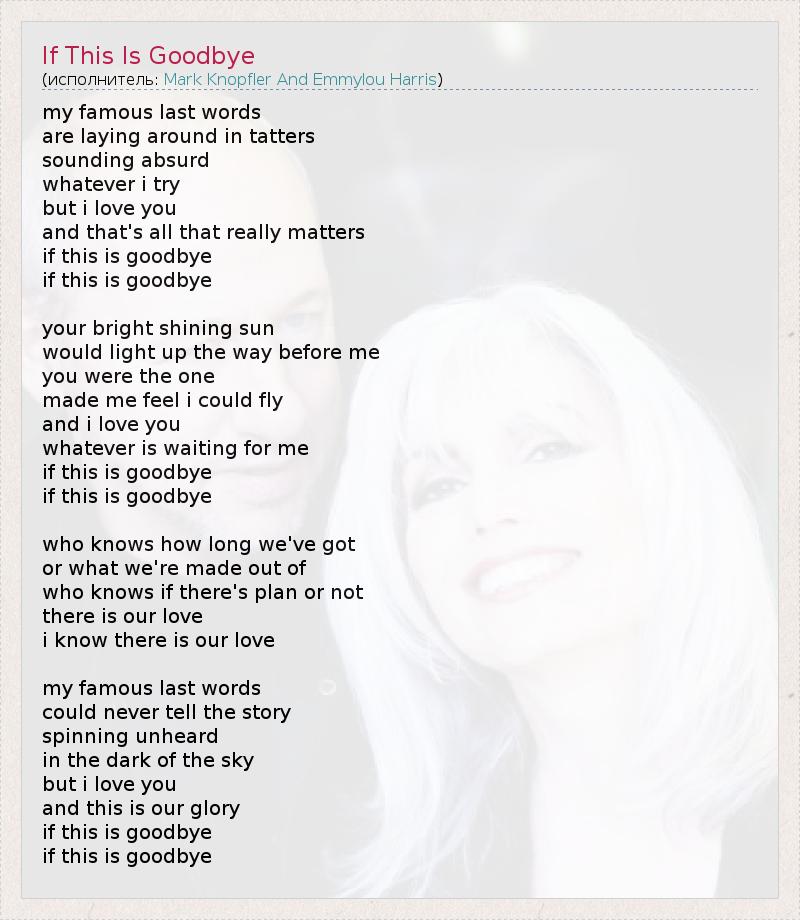 А как ты думаешь, о чем песня "If This Is Goodbye" ?
