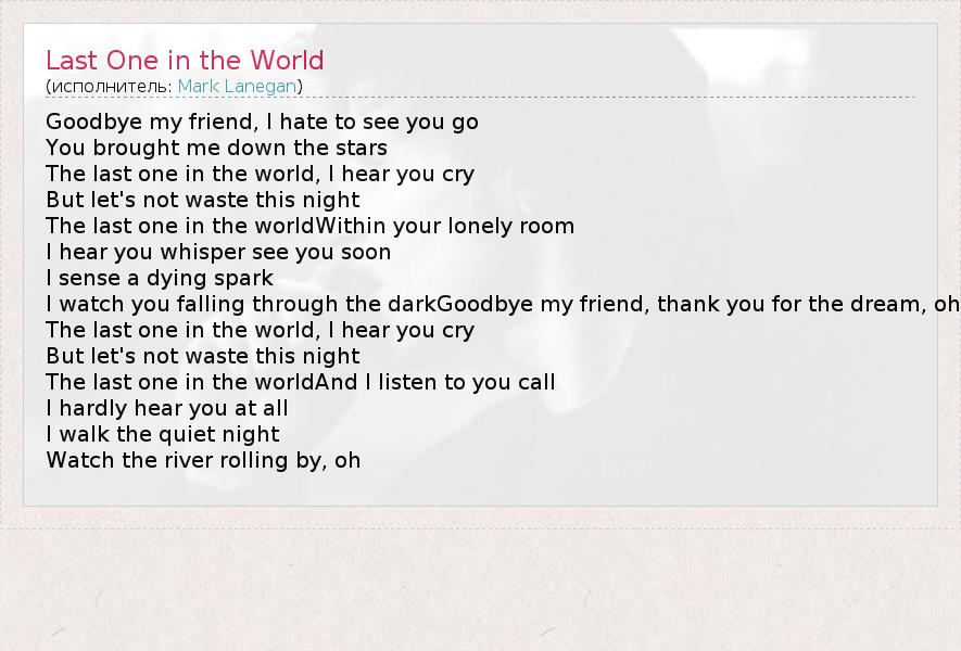 А как ты думаешь, о чем песня "Last One in the World" ?