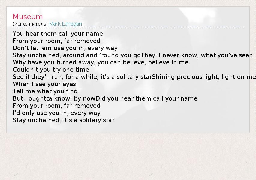 Это интересно:Mark Lanegan, член-основатель Screaming Trees, The Gutter Twins и многих других музыкальных коллективов, оказал огромное влияние на современную музыку. Во многом в роке не было ни одного сколько-то заметного коллектива, начиная с 90-х, который бы не мечтал записаться с этим молчуном "себе-на-уме".Марк родился 25 ноября 1964 года в Элленсбурге, штат Вашингтон,... продолжение