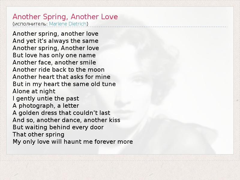 ГлавнаяИсполнителиMarlene DietrichAnother Spring, Another Love
