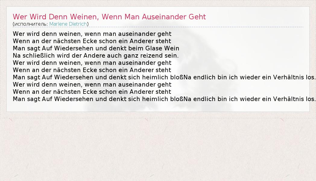 Wer Wird Denn weinen , Венна человек auseinander Geht