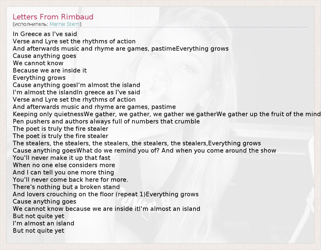 А как ты думаешь, о чем песня "Letters From Rimbaud" ?