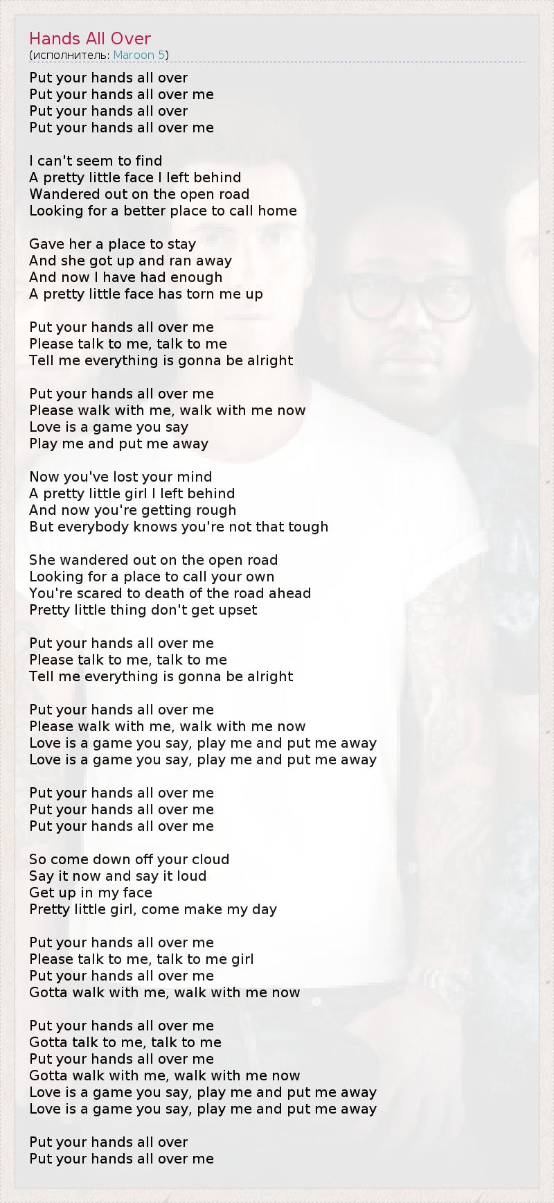 А как ты думаешь, о чем песня "Hands All Over" ?