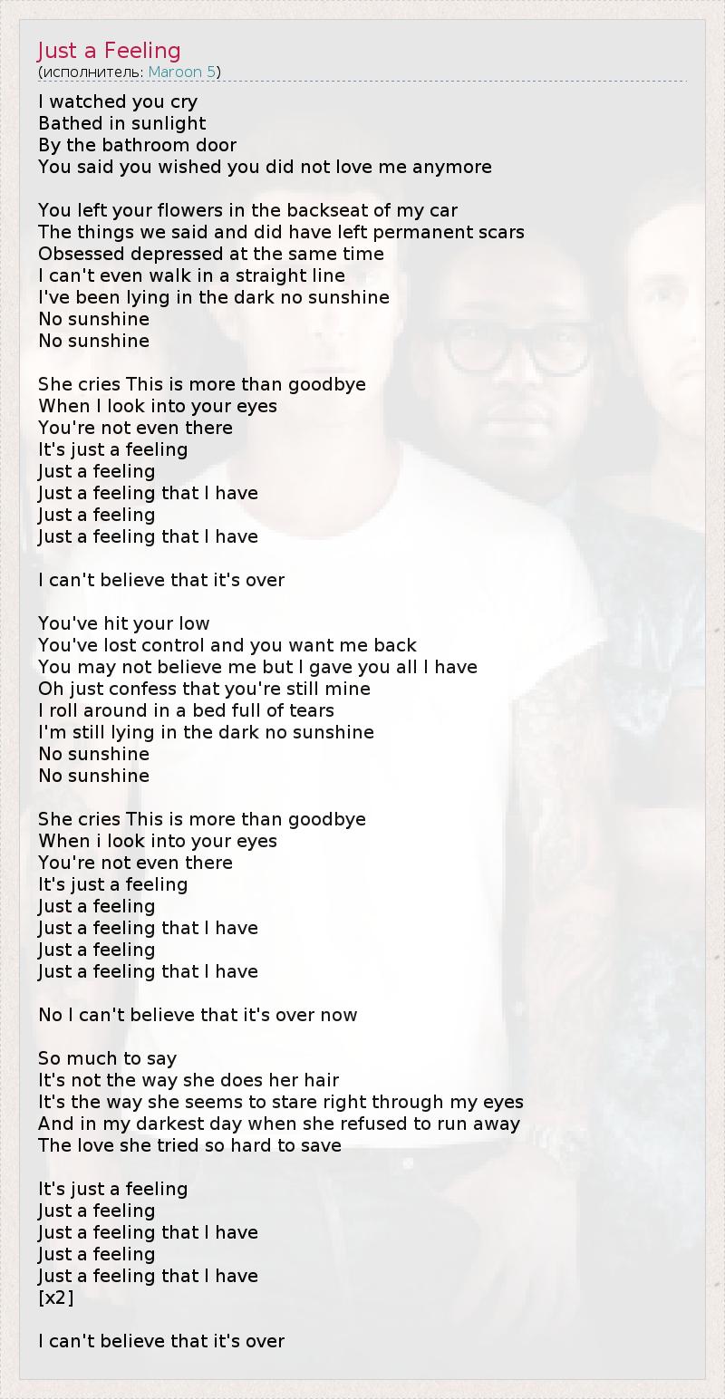 А как ты думаешь, о чем песня "Just a Feeling" ?