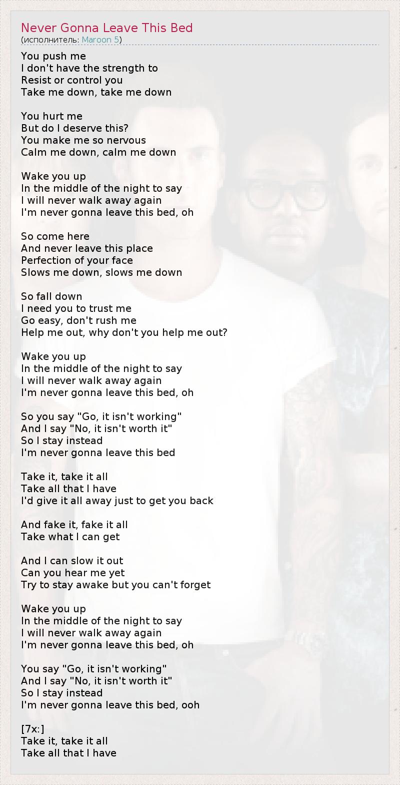 ГлавнаяИсполнителиMaroon 5Never Gonna Leave This Bed