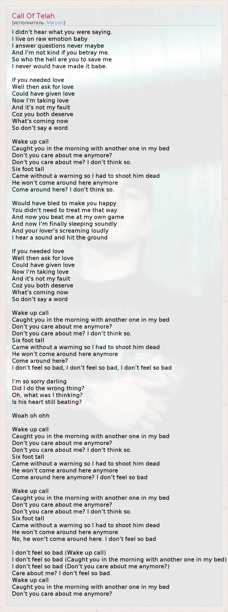 I don't feel so bad (Wake up call)