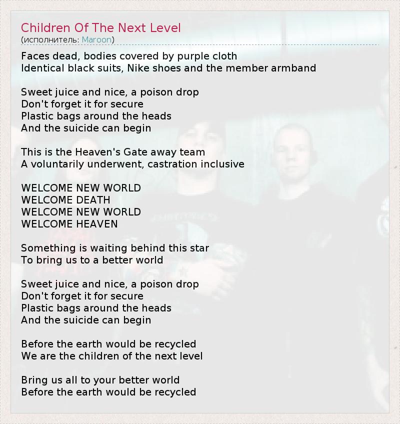 А как ты думаешь, о чем песня "Children Of The Next Level" ?